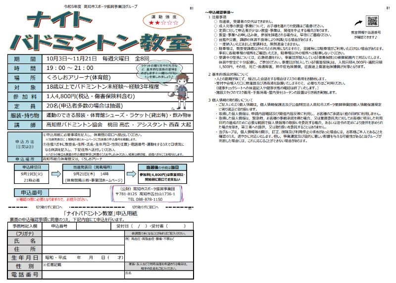 【申込用紙の配布・提出場所】…高知市総合体育館・くろしおアリーナ