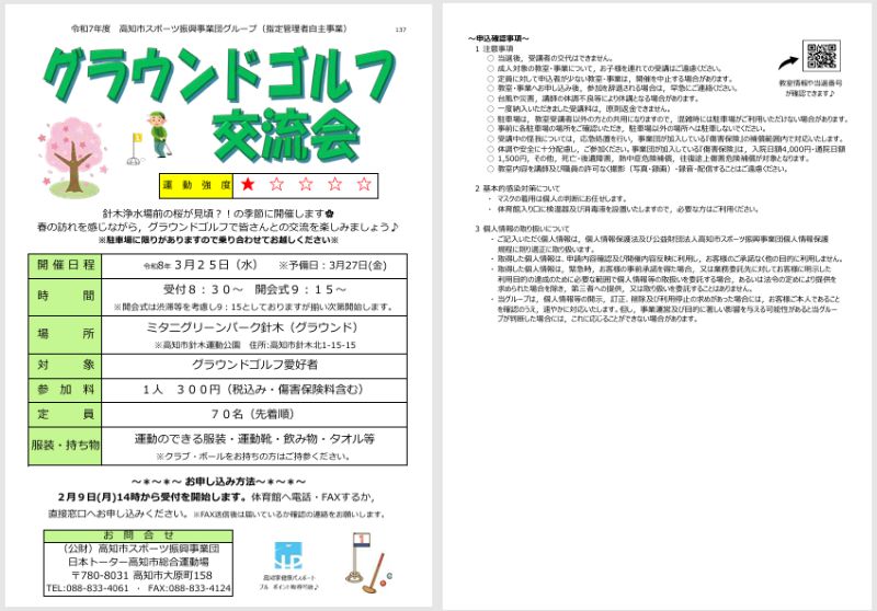 目的:高知市民を対象に,グラウンドゴルフを通じてスポーツの楽しさや地元地域でのふれあいの大切さを感じてもらう。
