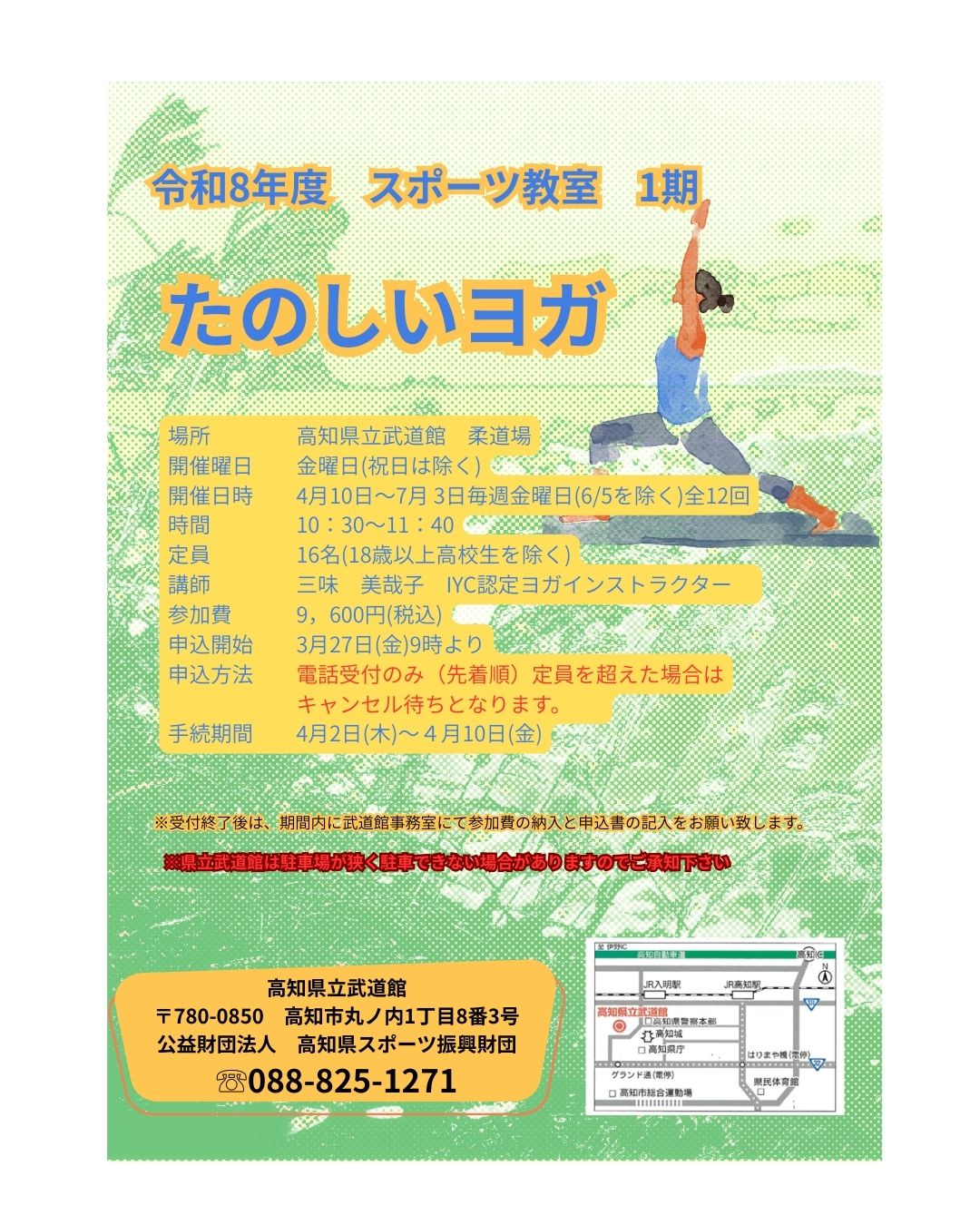 高知県立武道館(088-825-1271) ※定員になり次第受付終了