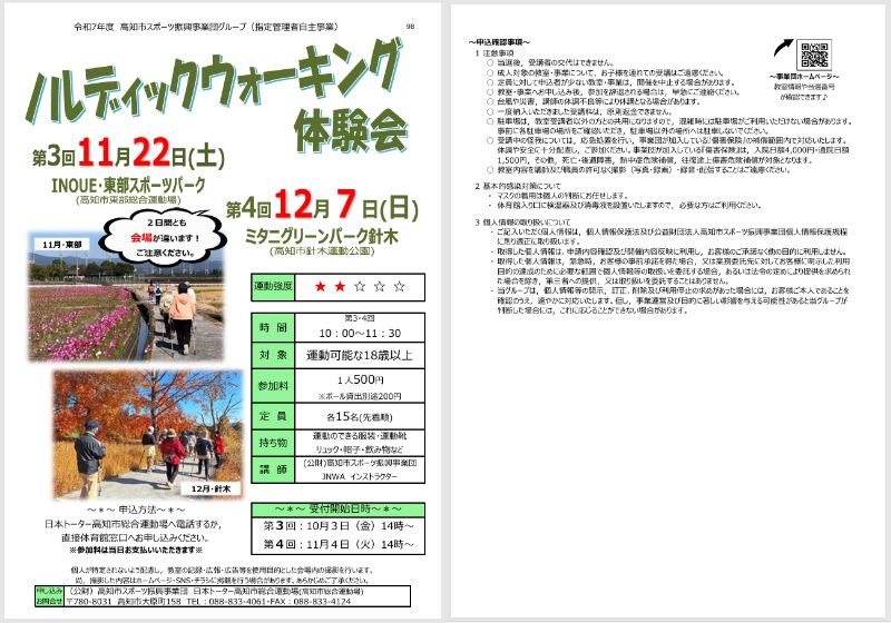 参加料:各1人500円(税込・傷害保険料含む)