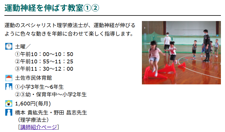 運動のスペシャリスト理学療法士が、運動神経が伸びるように色々な動きを年齢に合わせて楽しく指導します。 運動神経を伸ばす教室