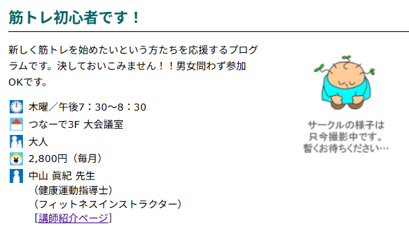 新しく筋トレを始めたいという方たちを応援するプログラムです。決しておいこみません!!男女問わず参加OKです。