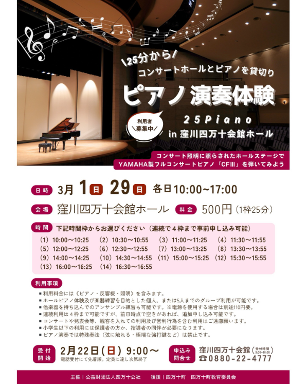 ・利用料金には《ピアノ・反響板・照明》を含みます