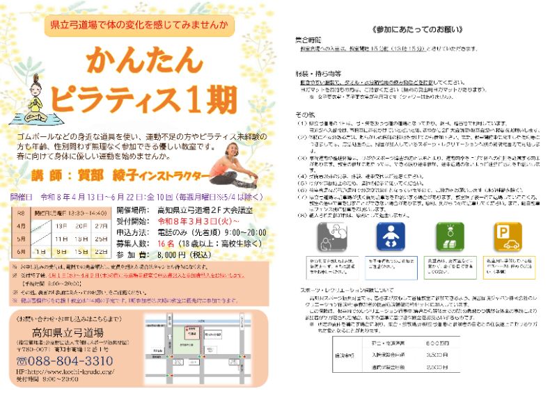 お申し込み:お電話での先着順 高知県立弓道場(088-804-3310)