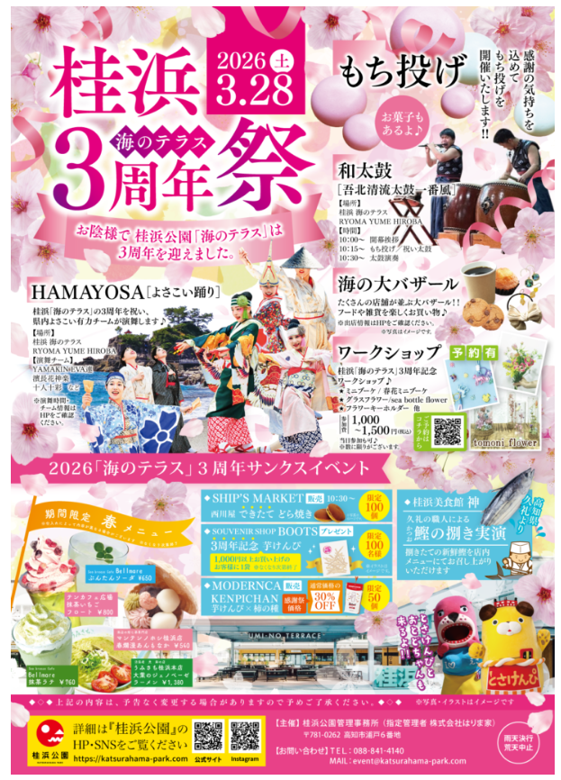 3月28日(土)、「桂浜公園「海のテラス」3周年祭」を開催!